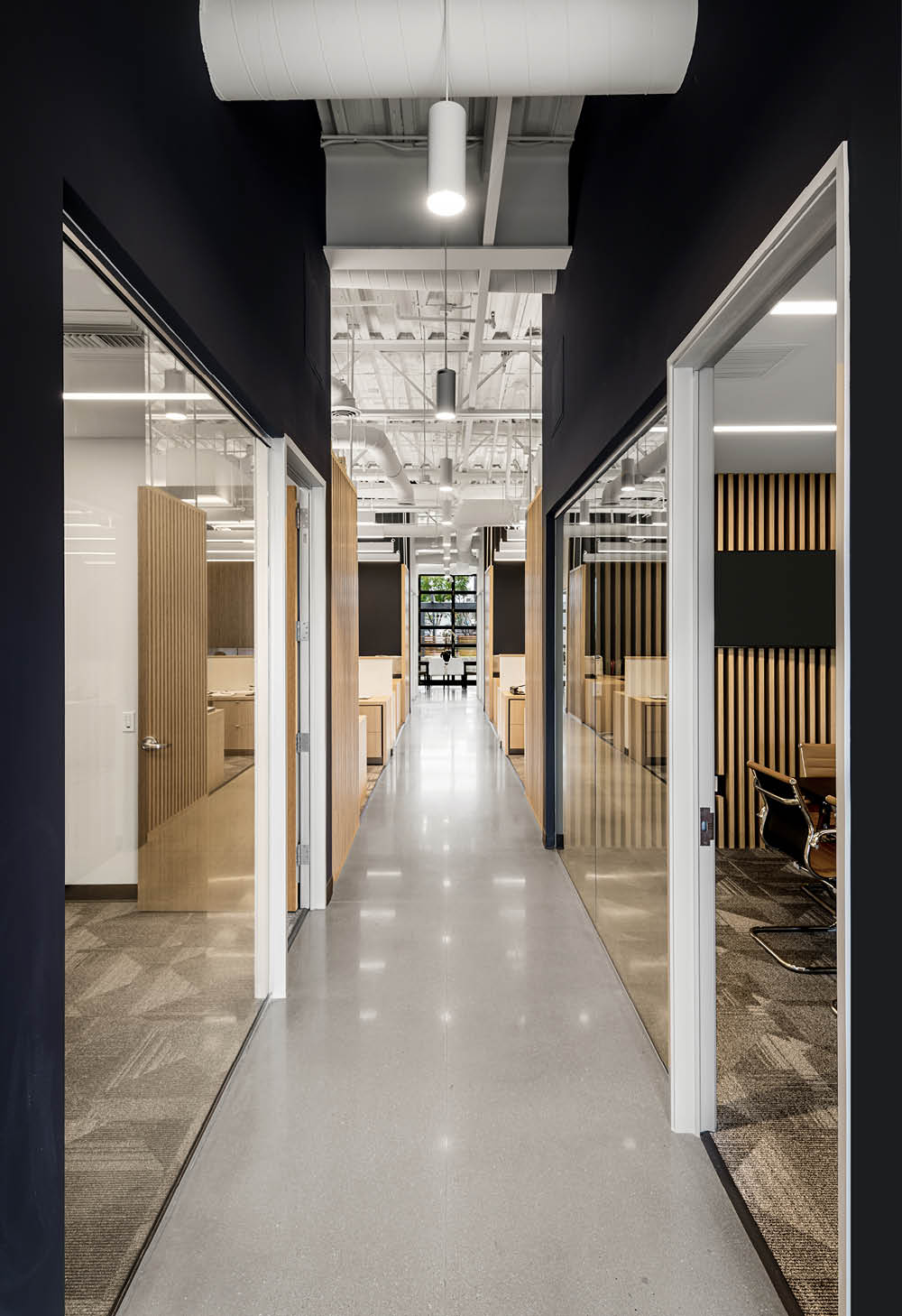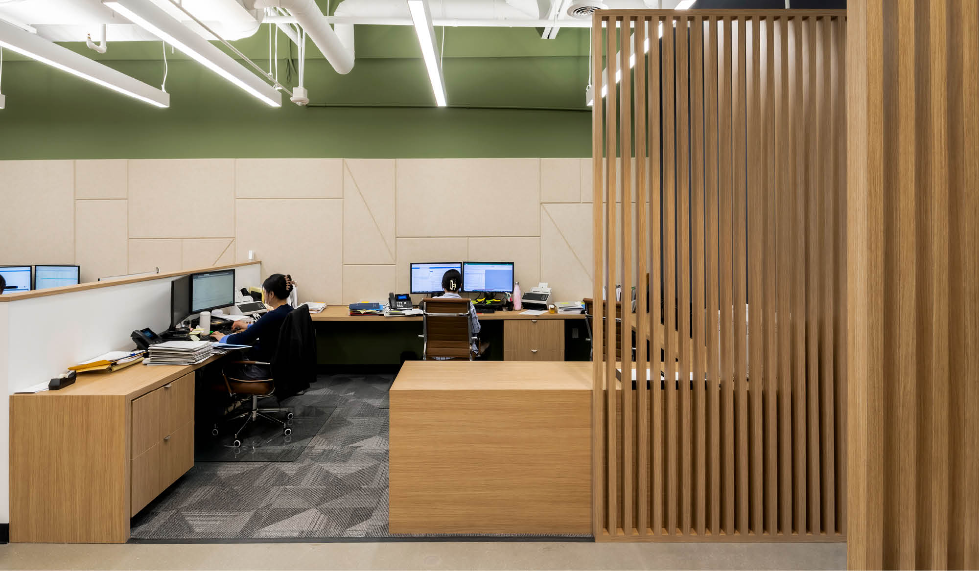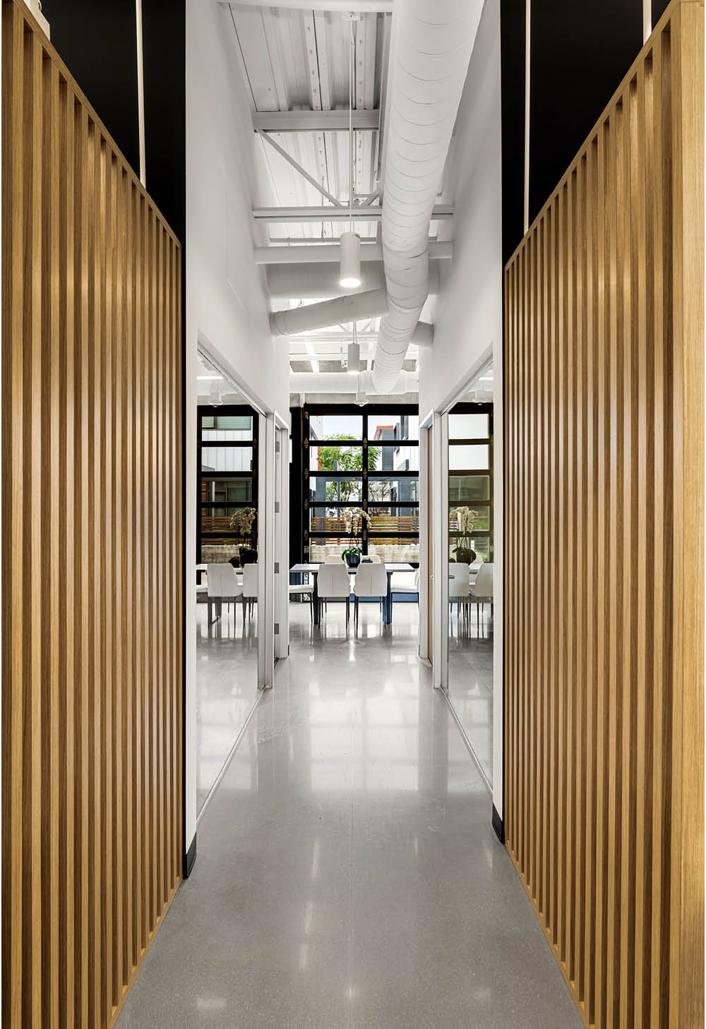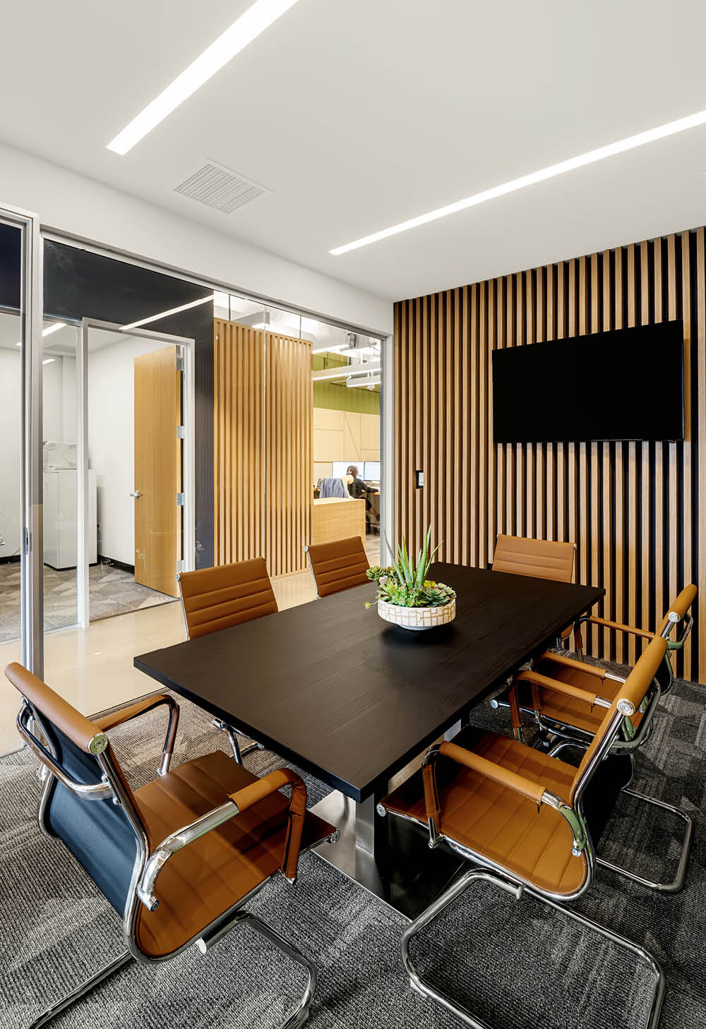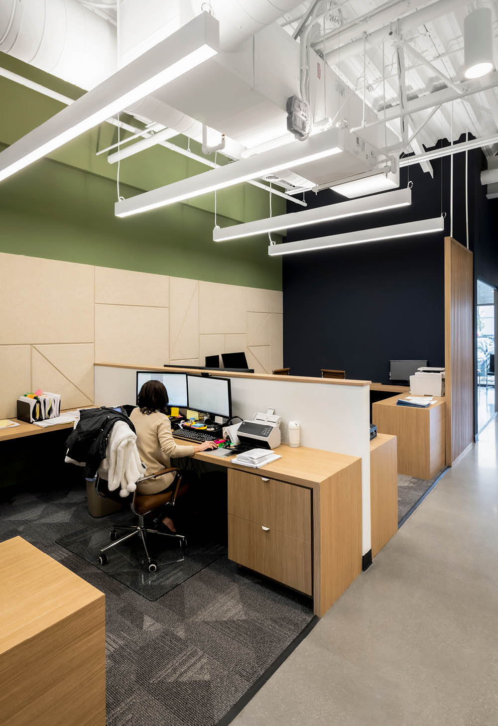 Given the opportunity to create working space for a busy accounting firm, we emphasized a central internal street connecting the welcome desk to the communal eatery and courtyard at the rear. Reflecting the work done on premises, the design is functional and clean, while providing needed private meeting rooms.