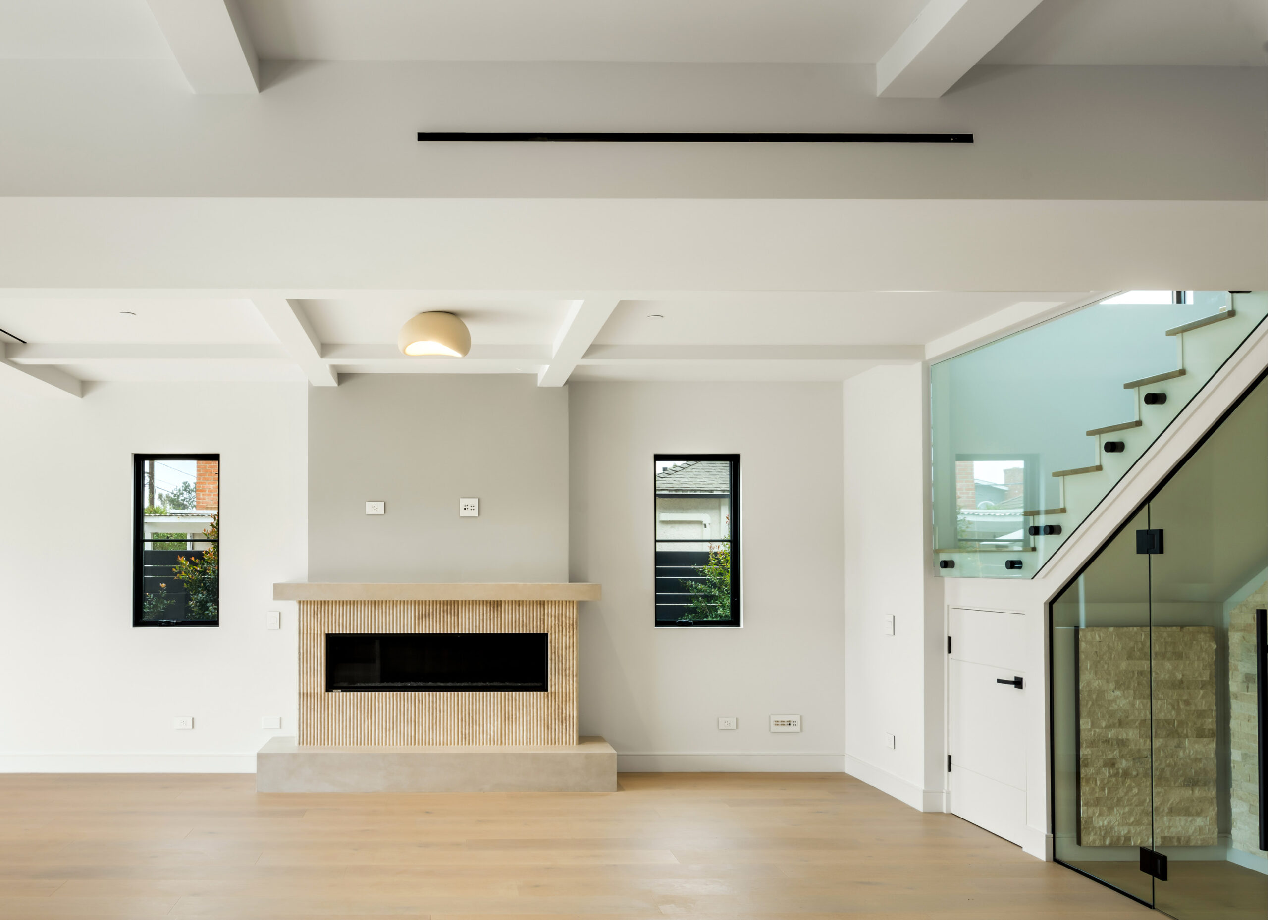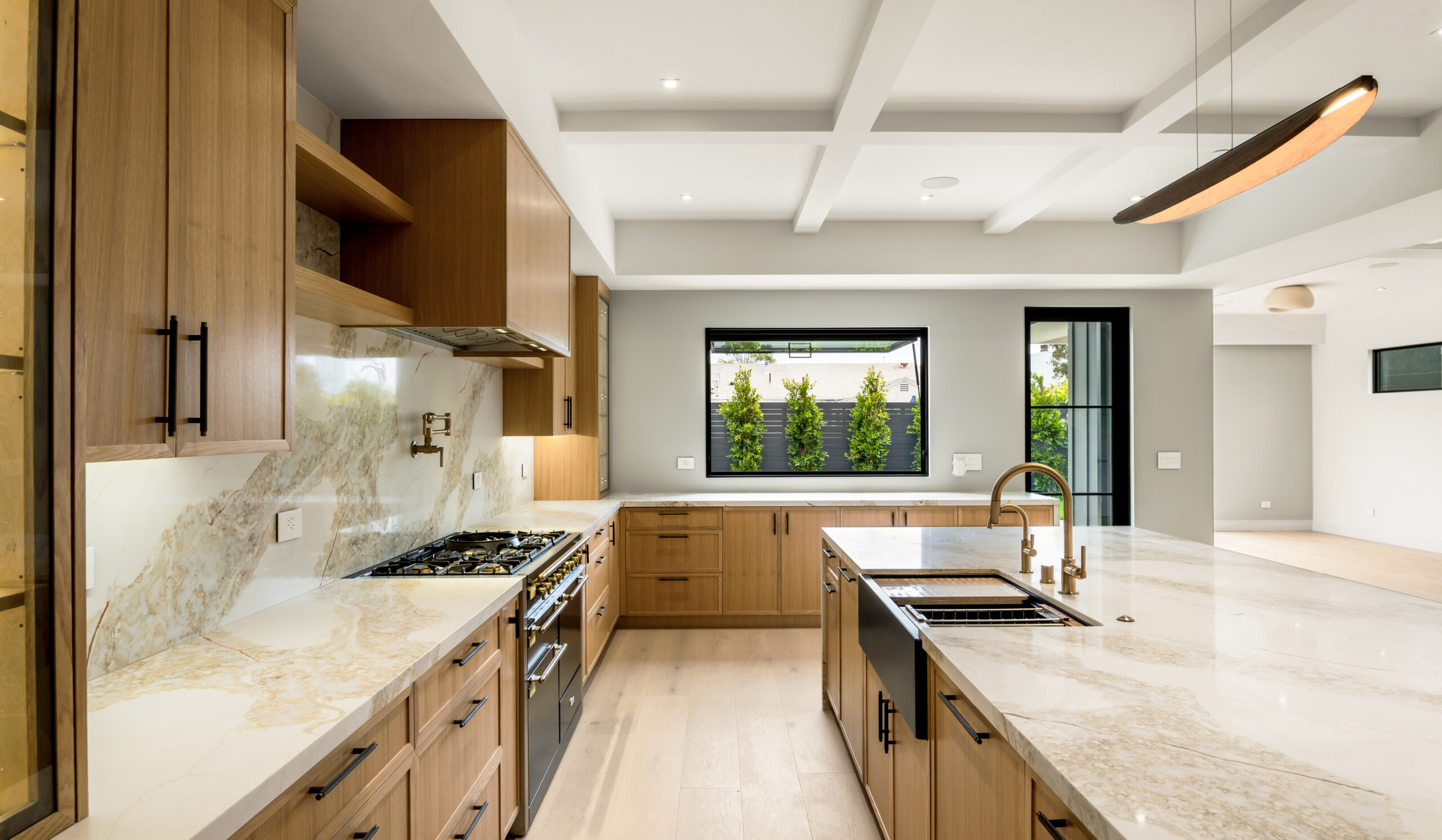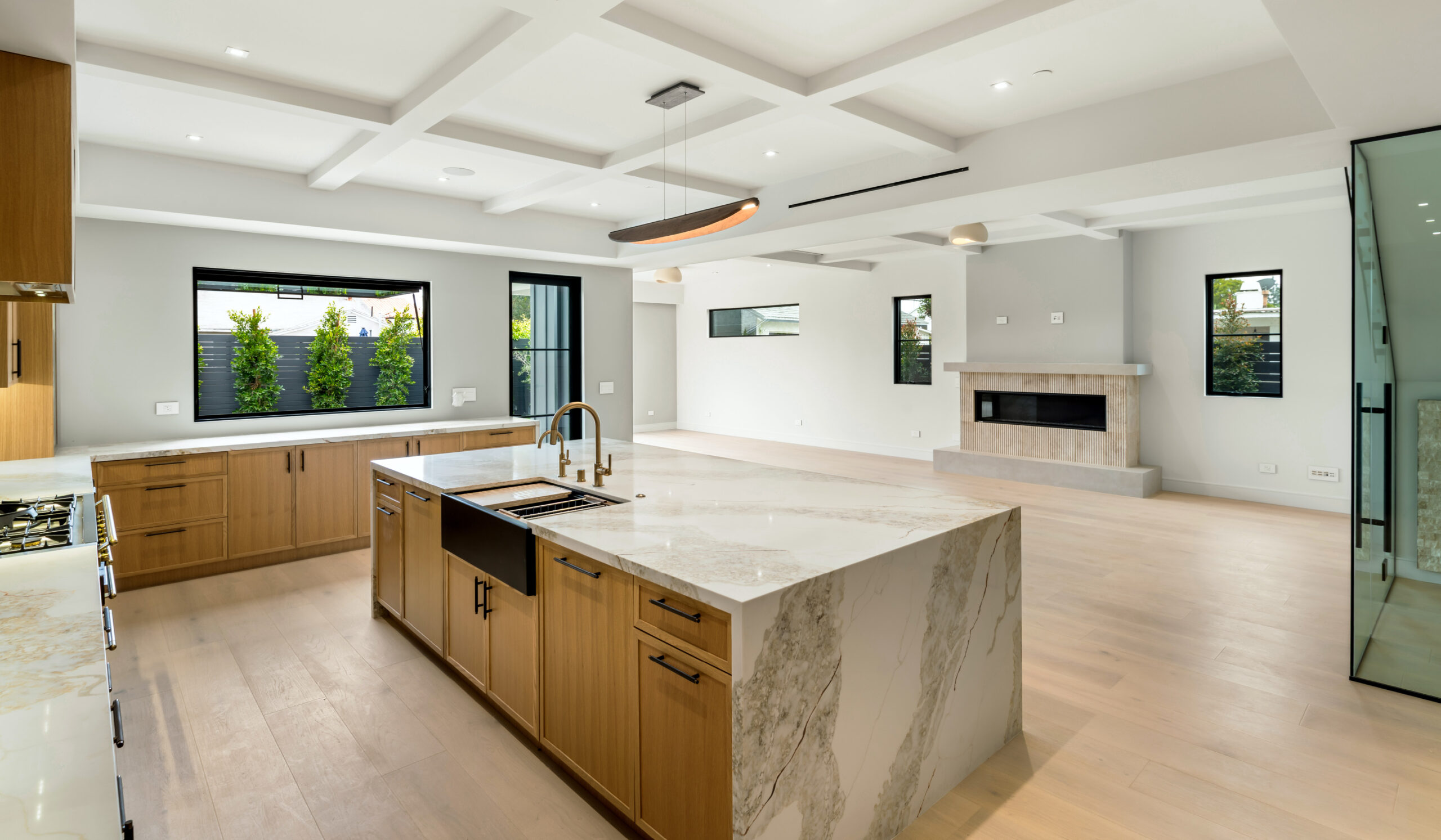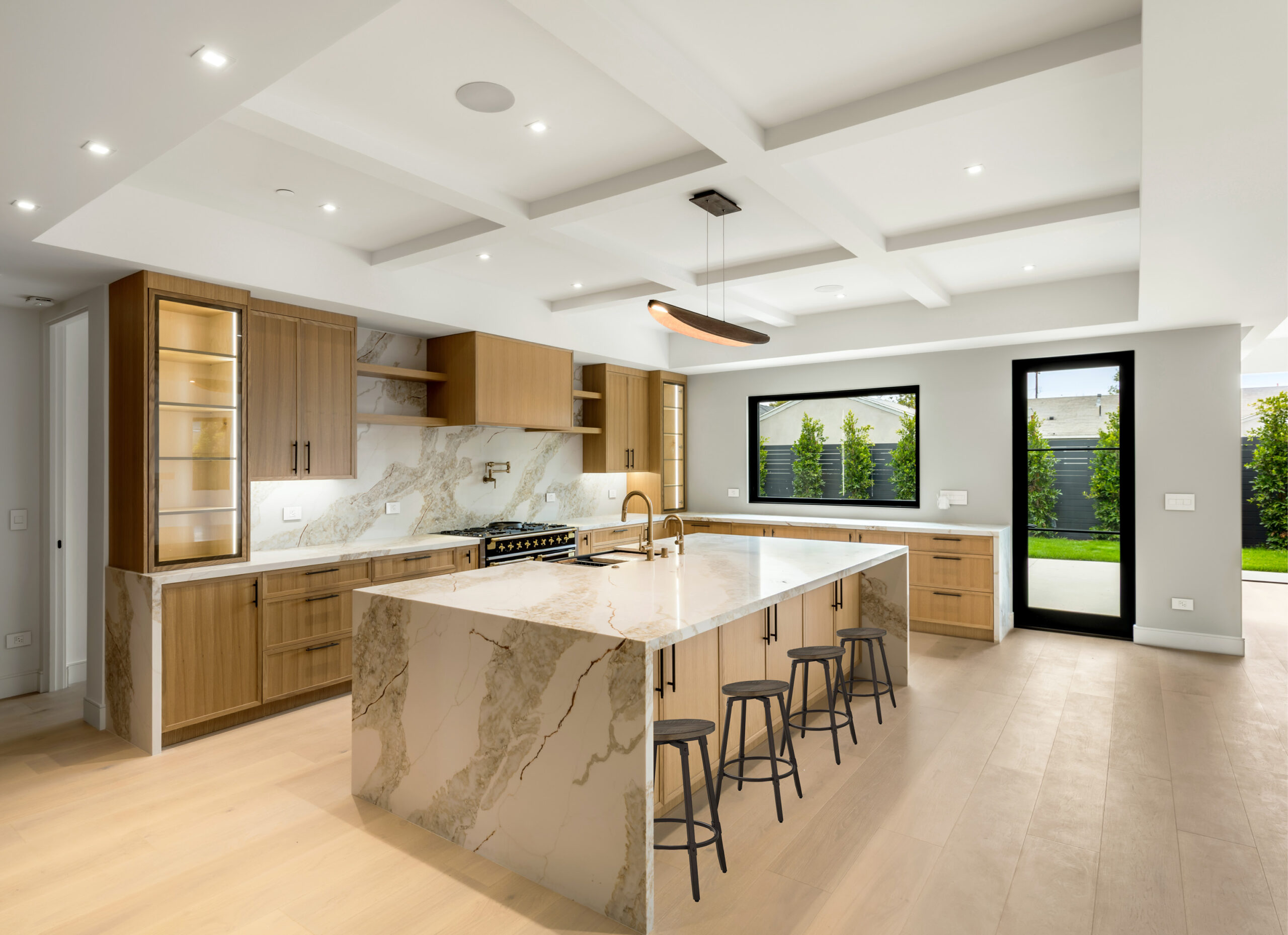 “Tra-Modern” is a name we use around here to describe homes that marry Traditional Elements with Modern Clean design.  This South Bay home in the Tree Section of Manhattan Beach is just that.  The main living space is airy, open, and leads seamlessly to the backyard living spaces, while using traditional detailing in the expansive kitchen area. On the exterior the “traditional white house” is moved into the 21st Century by adding black accents and textures.  Our team intentionally broke the façade into smaller pieces which reduced the verticality of the space and helps integrate the home into the neighborhood and the owners into their new community.