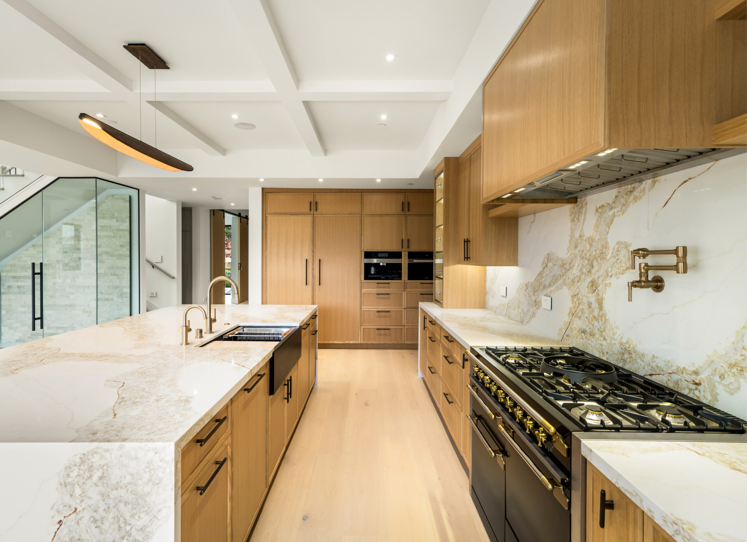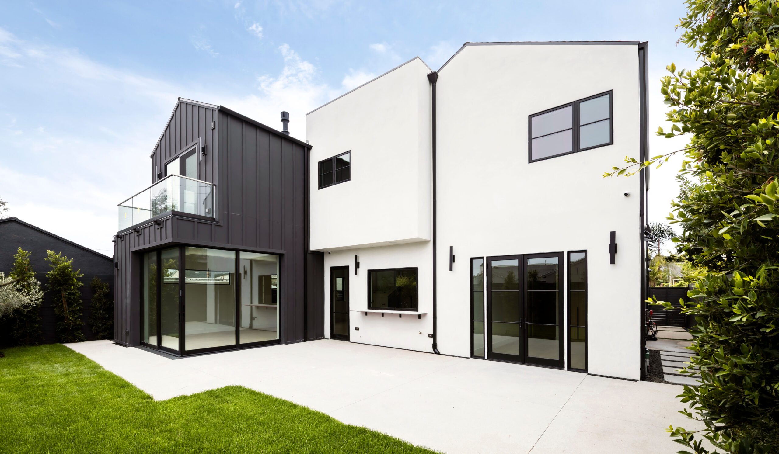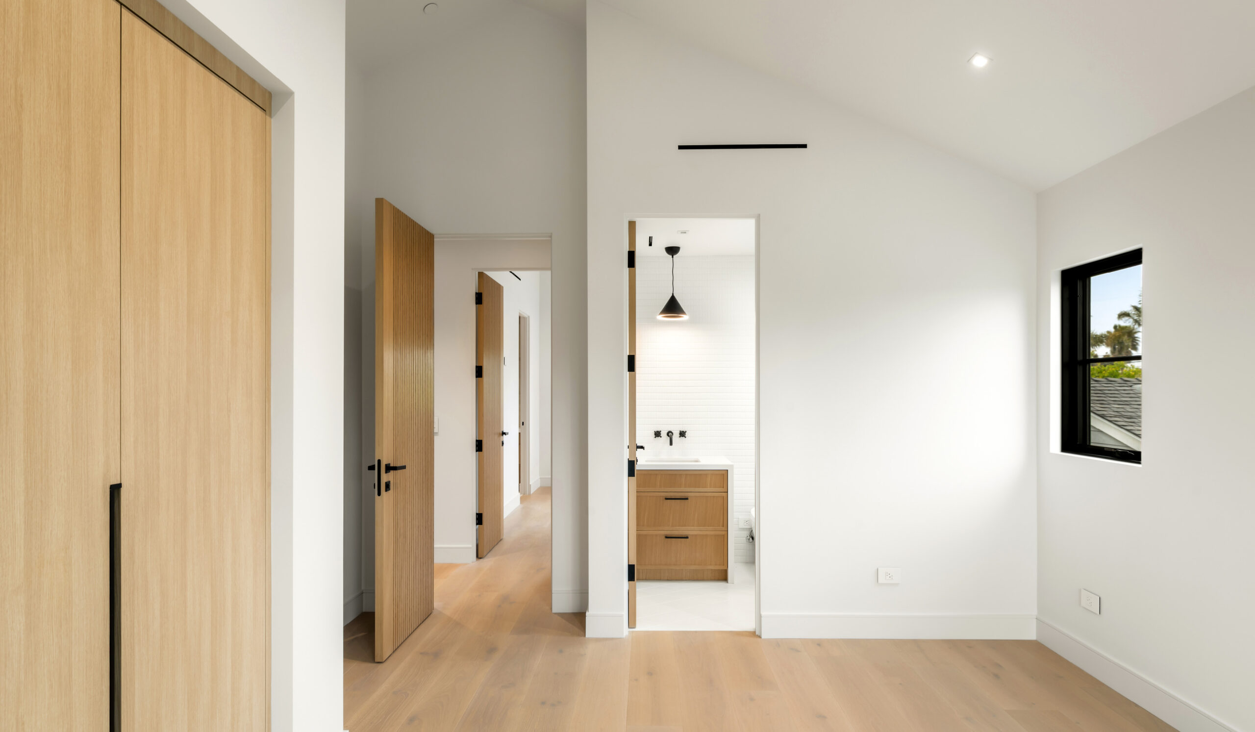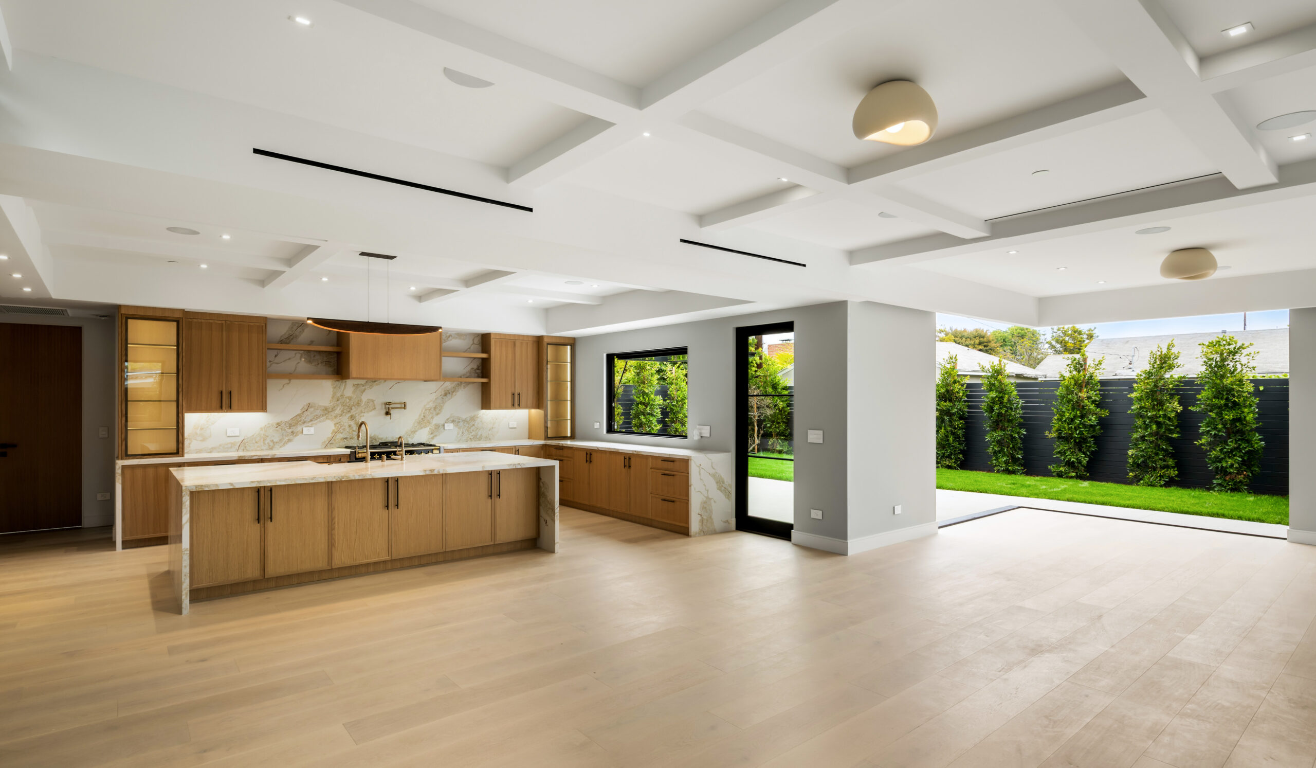 “Tra-Modern” is a name we use around here to describe homes that marry Traditional Elements with Modern Clean design.  This South Bay home in the Tree Section of Manhattan Beach is just that.  The main living space is airy, open, and leads seamlessly to the backyard living spaces, while using traditional detailing in the expansive kitchen area. On the exterior the “traditional white house” is moved into the 21st Century by adding black accents and textures.  Our team intentionally broke the façade into smaller pieces which reduced the verticality of the space and helps integrate the home into the neighborhood and the owners into their new community.