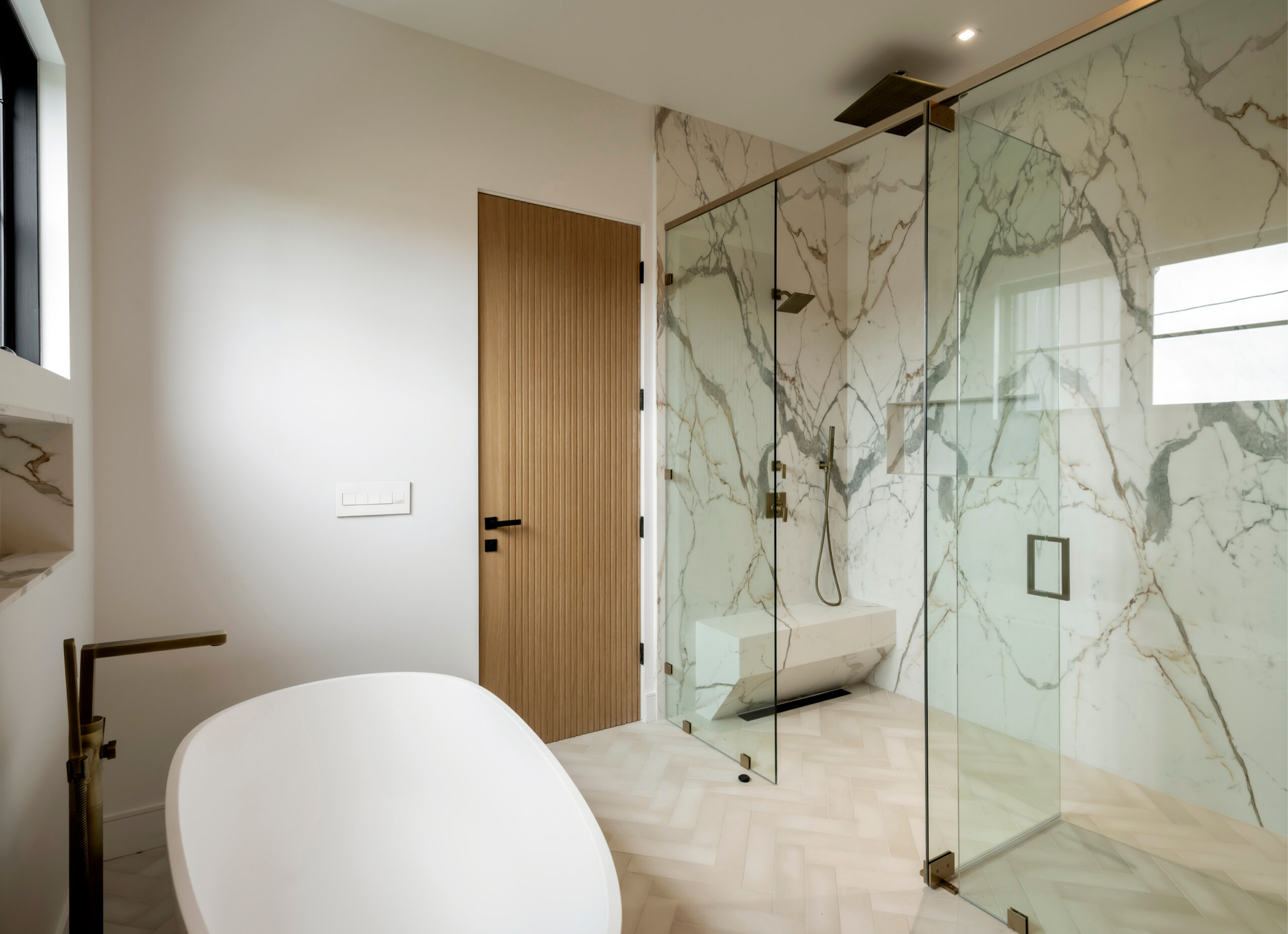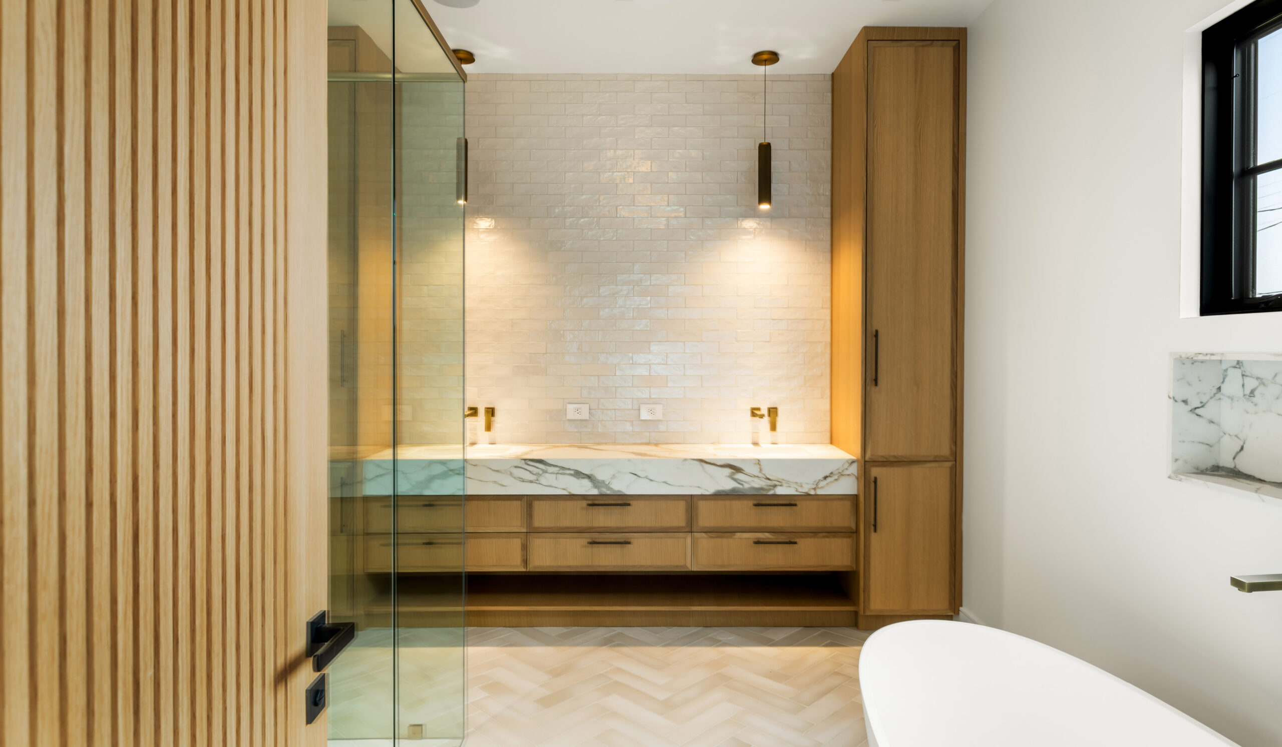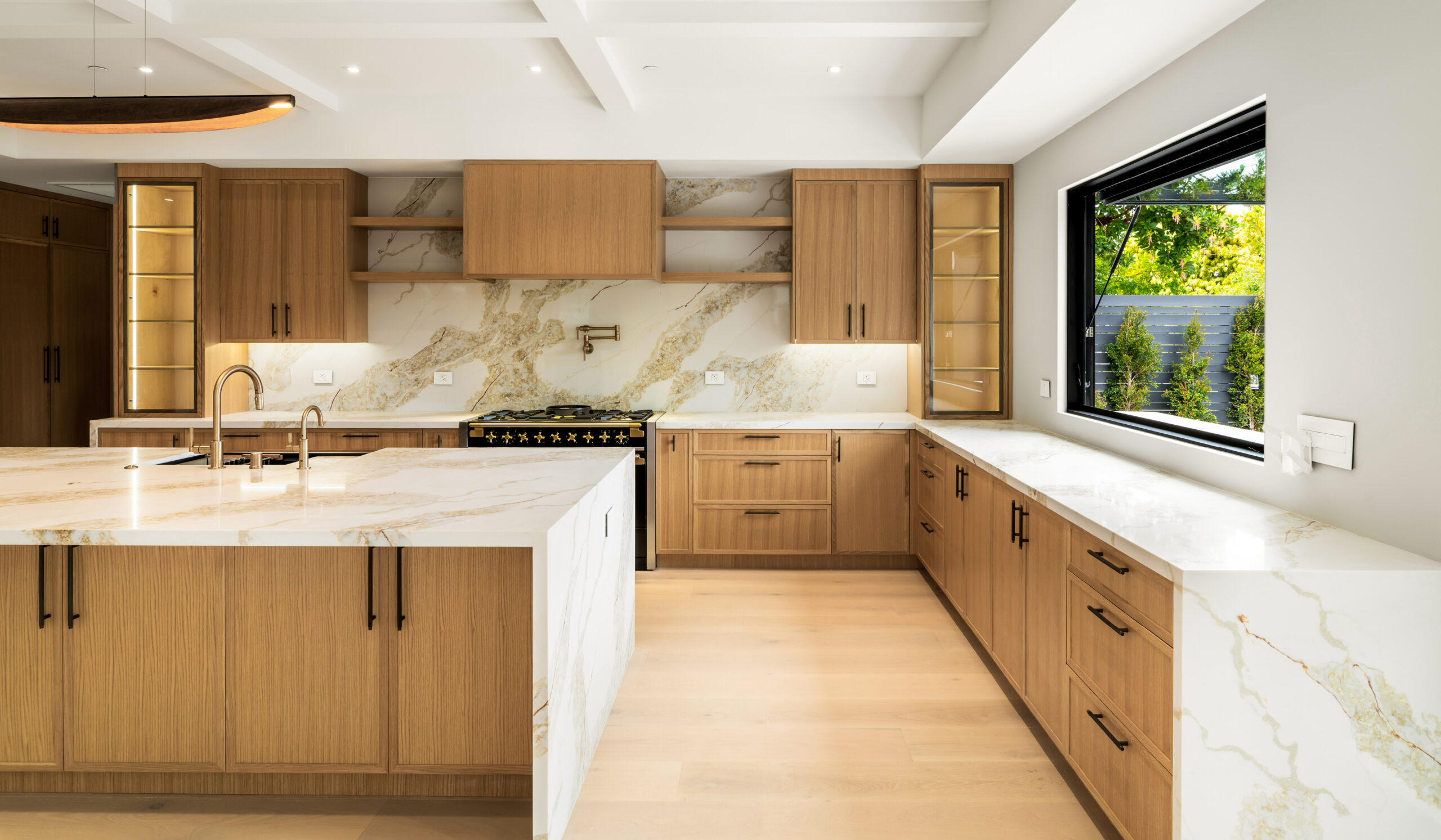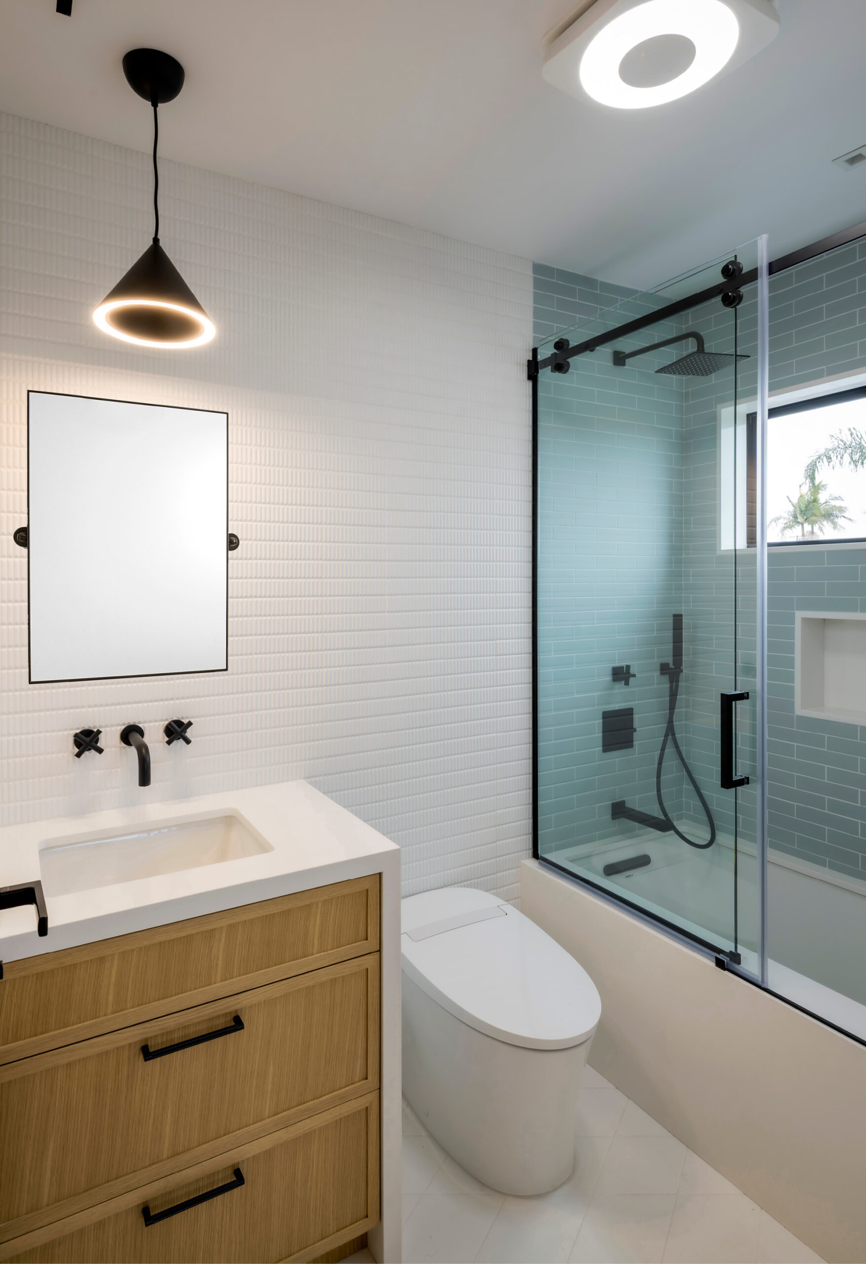 “Tra-Modern” is a name we use around here to describe homes that marry Traditional Elements with Modern Clean design.  This South Bay home in the Tree Section of Manhattan Beach is just that.  The main living space is airy, open, and leads seamlessly to the backyard living spaces, while using traditional detailing in the expansive kitchen area. On the exterior the “traditional white house” is moved into the 21st Century by adding black accents and textures.  Our team intentionally broke the façade into smaller pieces which reduced the verticality of the space and helps integrate the home into the neighborhood and the owners into their new community.
