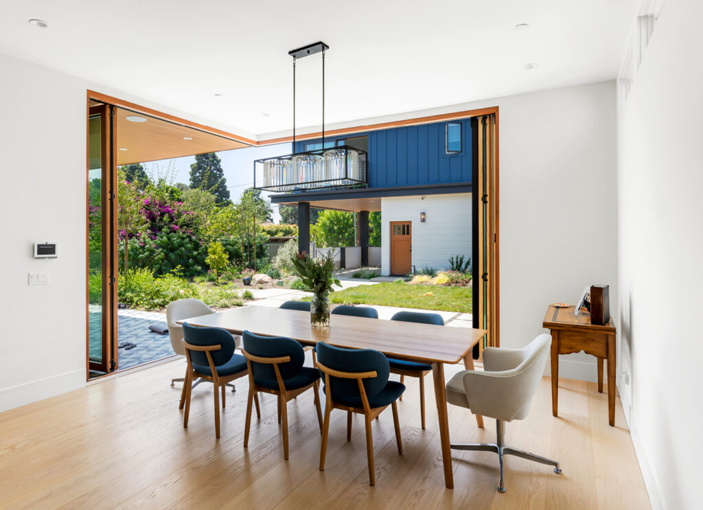In Santa Monice a ground-up house for lovely clients who wanted a cozy but modern space for their family. Using traditional forms on the outside with clean lines on the inside the house blends the past the with today. The main house is connected visually to the accessory dwelling unit that sits at the back of the large lot.