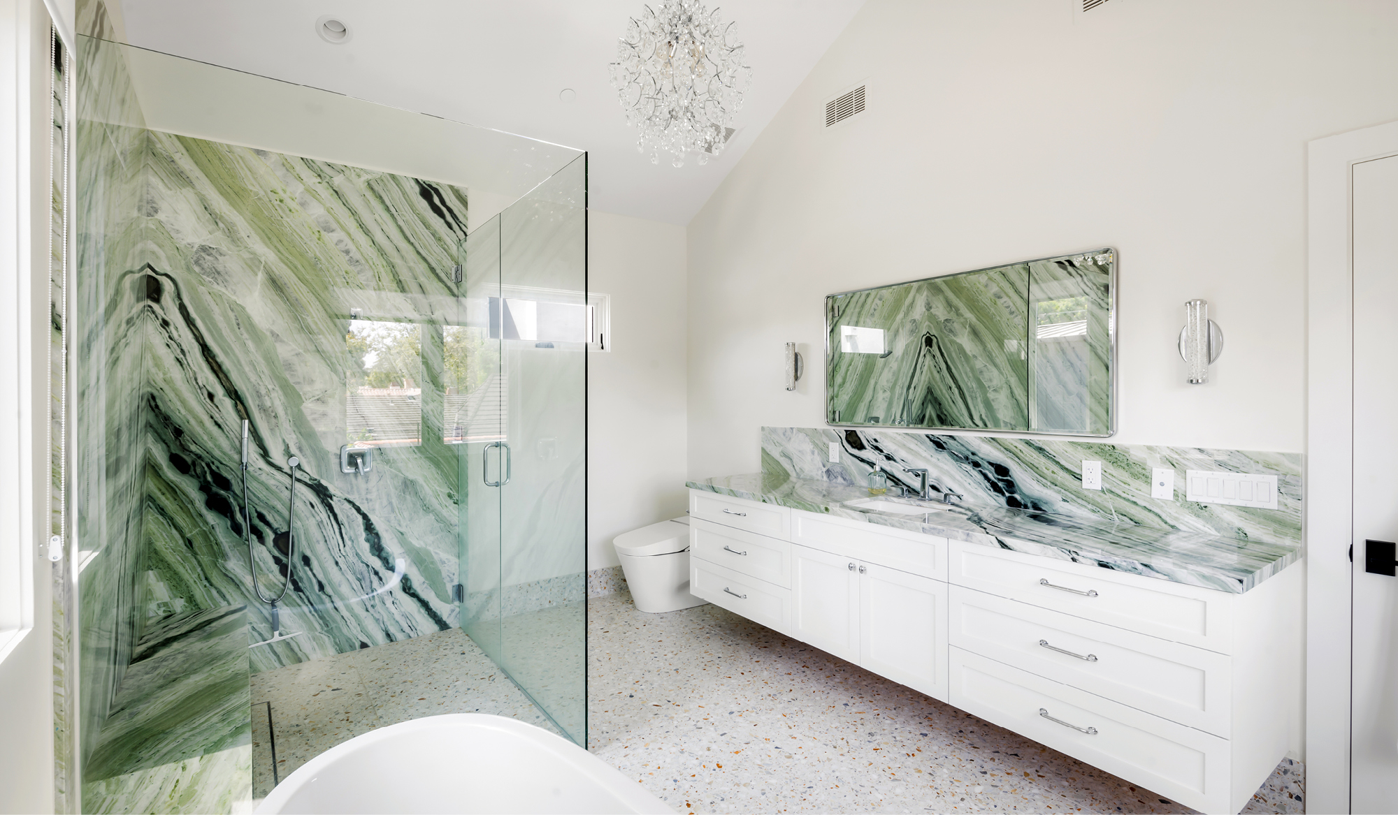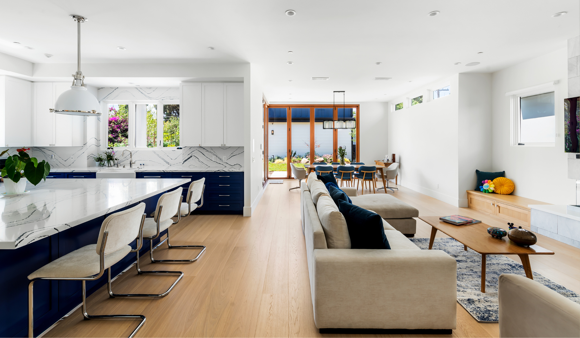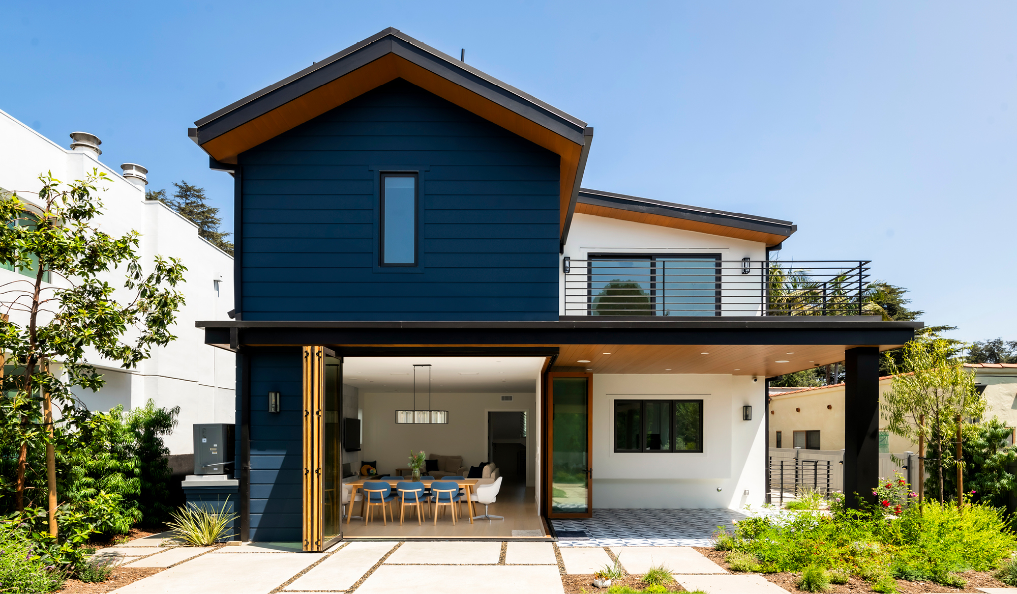 In Santa Monice a ground-up house for lovely clients who wanted a cozy but modern space for their family. Using traditional forms on the outside with clean lines on the inside the house blends the past the with today. The main house is connected visually to the accessory dwelling unit that sits at the back of the large lot.