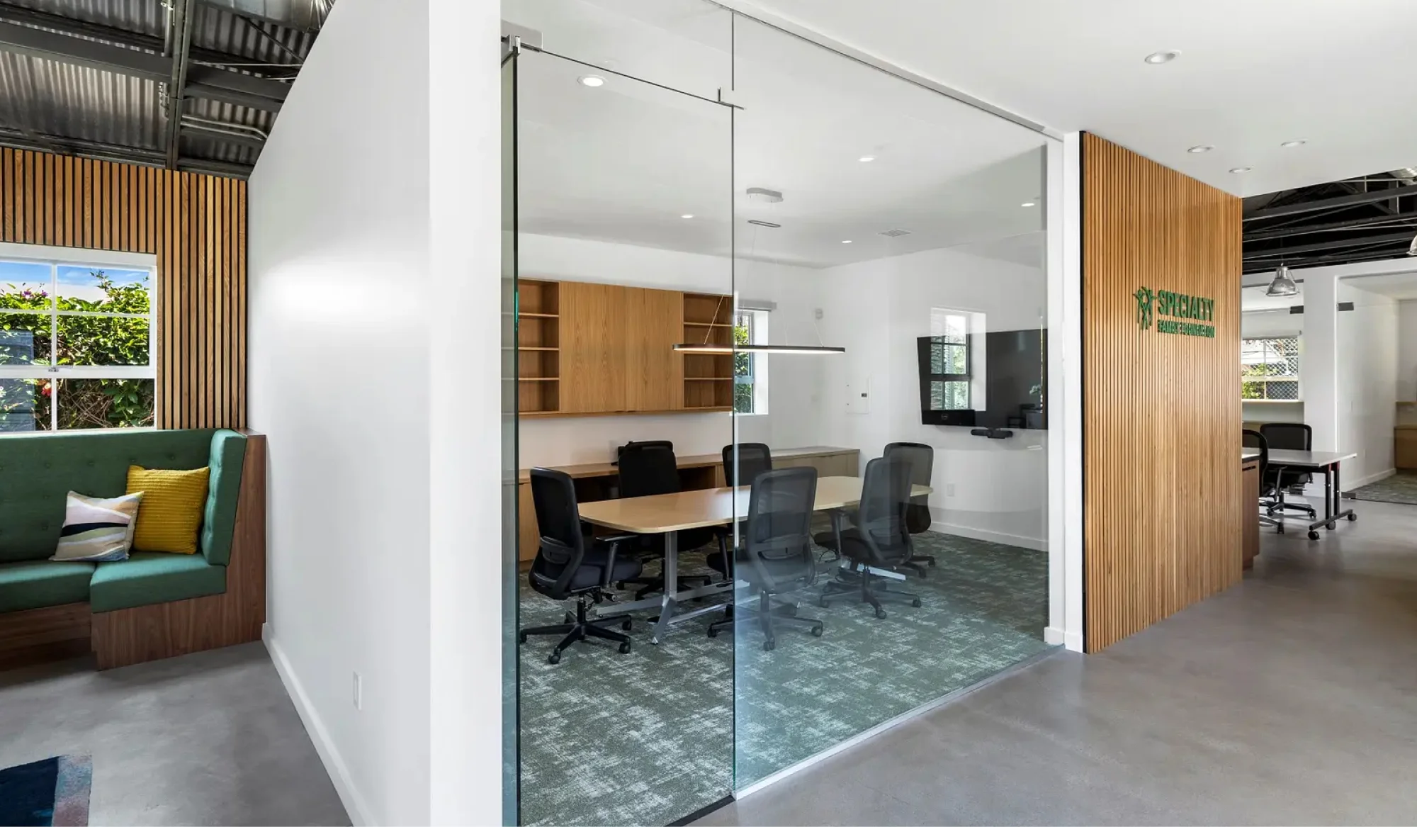 At Hamilton Architects, we excel in transforming spaces with historical significance into contemporary workplaces. Our collaboration with The Specialty Family Foundation involved the meticulous restoration of a WWII-era machine shop, infusing it with a modern sensibility while heritage. By carefully selecting furniture and fixtures that resonate with the building’s character, such as Knoll conference tables and Room & Board lounge chairs, we created a space that reflects both the foundation’s mission and its respect for historical architecture.